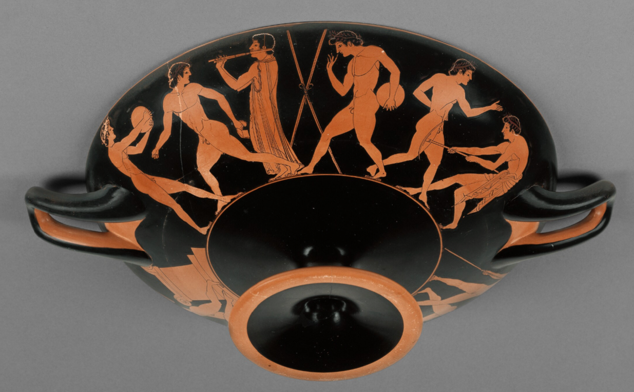 Kylix (wine cup) with mature and young athletes, 510-500 BCE